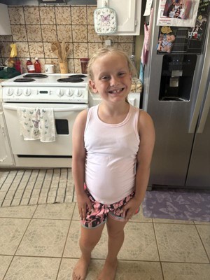 My seven year old daughter loves her new tank top. It’s a light pretty pastel soft pink. I love the design with the cinched sides for a stylish flattering look. The fabric is so soft, stretchy, breathable and comfortable. This is ideal for her with how active she is. Great for those hot summer days! Overall a nice quality tank top that she is happy with. Thank you!