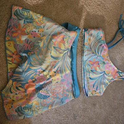 [This review was collected as part of a promotion.] We picked up this three-piece swimsuit for my 11 year-old daughter in a size large, she is around 90 pounds. The fit was spot on and she felt comfortable moving around in it. One thing we both liked was the skirt piece. This gave her a little extra coverage while still looking cute and matching with the rest of the set. The colors are bright in person. She liked the tropical vibe. I liked that this had the built-in sun protection and the fabric feels soft and comfortable. I received an incentive to write this review.