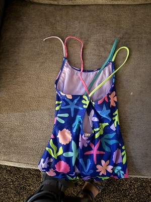 This is my daughter’s new favorite swimsuit! She loves the colors & print, and says it’s really comfortable. She’s been wearing it almost every day so far this summer for the pool, and it’s holding up well! Fits true to size & I will buy a size up for next year.