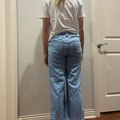 Girls elastic waist wide leg jeans