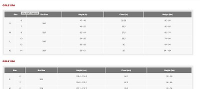 Size Bra Size Height (in) Chest (in) Weight (lbs)