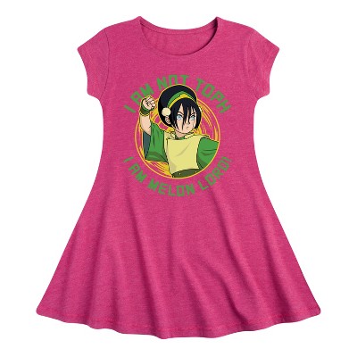 Girls' Avatar - The Last Airbender Elements Harmony Fit & Flair Cap Sleeve Graphic Dress - Heather Fuchsia - Medium
