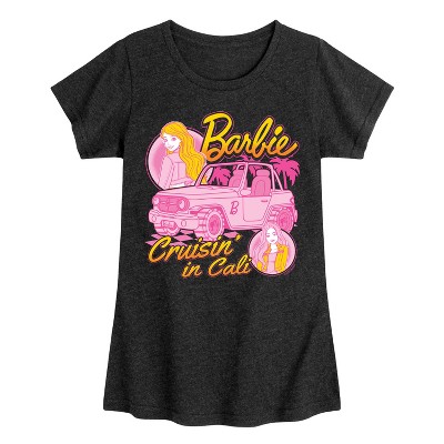 Girls' Barbie Barbie Land Palm Trees Fitted Short Sleeve Graphic T-Shirt - Heather Black - Small