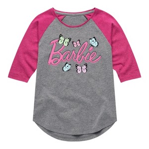 Girls' - Barbie - Butterflies Flutter Shirt Tail Raglan Graphic T-shirt - 1 of 2