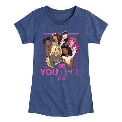 Girls' Barbie Butterfly Logo Fitted Short Sleeve Graphic T-Shirt - Heather Navy - Large
