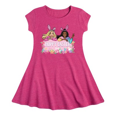 Barbie - Easter - In Full Bloom - Toddler And Youth Girls Fit And Flare Dress - Step into the glamorous pink world of Barbie with our officially licensed graphic garments for the fashion-forward! Whether you dream of being a fashion designer, a mermaid princess, or a world-traveling explorer, our garments bring Barbie's world to life with vibrant colors and playful prints. Crafted with quality materials and attention to detail, each piece ensures comfort and durability for all-day play. Express your unique sense of style and imagination with our exclusive Barbie graphic apparel!