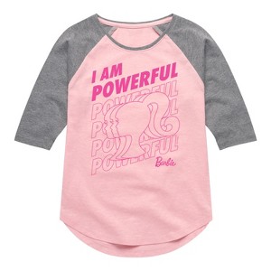 Barbie - I Am Powerful - Original Classic Color - Toddler And Youth Girls Raglan Graphic T-Shirt - Step into the glamorous pink world of Barbie with our officially licensed graphic garments for the fashion-forward! Whether you dream of being a fashion designer, a mermaid princess, or a world-traveling explorer, our garments bring Barbie's world to life with vibrant colors and playful prints. Crafted with quality materials and attention to detail, each piece ensures comfort and durability for all-day play. Express your unique sense of style and imagination with our exclusive Barbie graphic apparel!