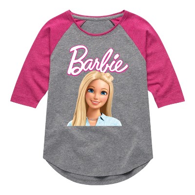 Barbie - Original Barbie - Doll - Toddler And Youth Girls Raglan Graphic T-Shirt - Step into the glamorous pink world of Barbie with our officially licensed graphic garments for the fashion-forward! Whether you dream of being a fashion designer, a mermaid princess, or a world-traveling explorer, our garments bring Barbie's world to life with vibrant colors and playful prints. Crafted with quality materials and attention to detail, each piece ensures comfort and durability for all-day play. Express your unique sense of style and imagination with our exclusive Barbie graphic apparel!