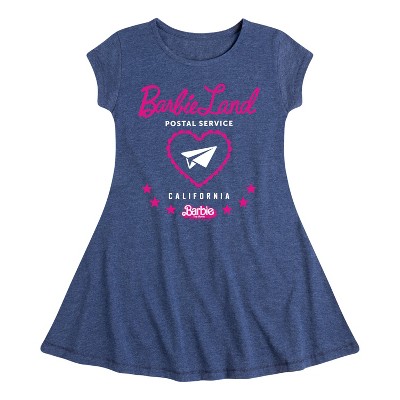 Girls' Barbie Peace Love Barbie Fit & Flair Cap Sleeve Graphic Dress - Heather Navy - Medium