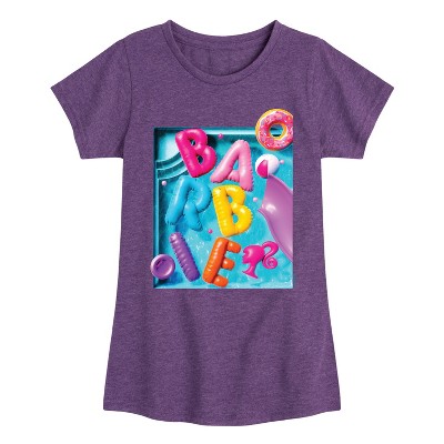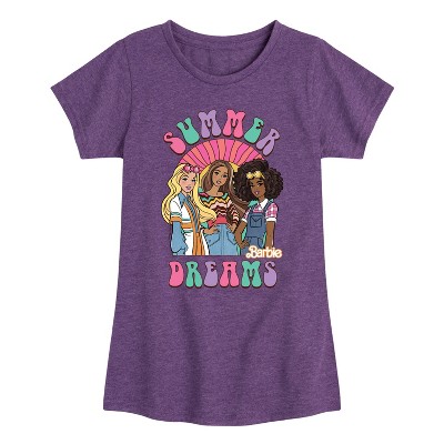 Girls' Barbie Summer Time Dream Fitted Short Sleeve Graphic T-Shirt - Heather Purple - Medium