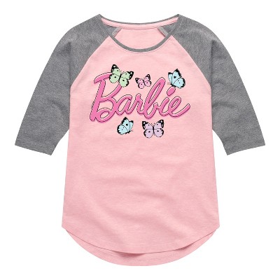 Barbie - Witch Sihloutte - Toddler And Youth Girls Raglan Graphic T-Shirt - Step into the glamorous pink world of Barbie with our officially licensed graphic garments for the fashion-forward! Whether you dream of being a fashion designer, a mermaid princess, or a world-traveling explorer, our garments bring Barbie's world to life with vibrant colors and playful prints. Crafted with quality materials and attention to detail, each piece ensures comfort and durability for all-day play. Express your unique sense of style and imagination with our exclusive Barbie graphic apparel!