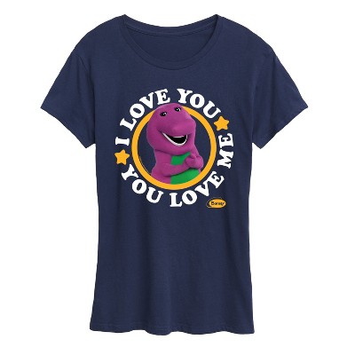 Barney - Collegiate - Youth Girls Fitted Short Sleeve T-Shirt - Bring back the love and friendship with Barney graphic apparel featuring the beloved purple dinosaur, Baby Bop, and BJ. Perfect for fans who grew up singing "I Love You" with their favorite prehistoric pal.