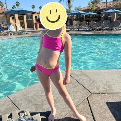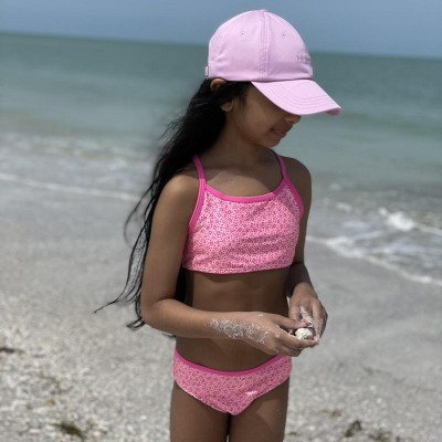 Update your fashionista's swim closet with the Bikini Set from Cat & Jack™. This two-piece bikini set includes a bikini top and a bikini bottom for a complete look. Tailored from recycled polyester fabric with spandex and full lining, this medium-coverage bikini set offers comfort all the time, whether they're diving, playing in the sand or indulging in other activities. Best of all, they'll stay shielded from the sun's rays with the UPF 50+ rated design.