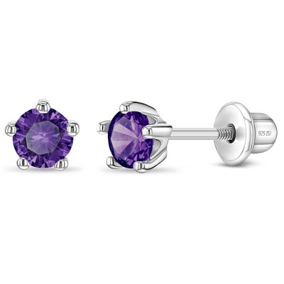 Girls' Classic Round Solitaire Screw Back Sterling Silver Earrings - Purple - In Season Jewelry