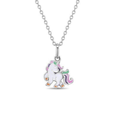 Surprise your little girl on her special day with this adorable rainbow enamel pendant necklace. A beautiful rainbow pendant that is designed carefully with a beautiful multicolor enamel, ideal to stand out with your little princess favorite outfits. Crafted from 925 sterling silver, this necklace arrives with a matching 16" link chain. A gift box is included with purchase for easy gifting.