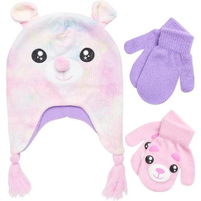 She will be ready for all daily activity with this fun and stylish uniquely designed girls hat and glove set. Critter accessories are great for birthday gifts or holiday gifts and also a fun addition to your clothing wardrobe to show off the cold days in style with a smile.