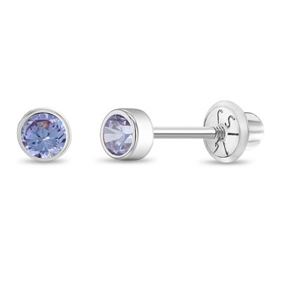 Girls' CZ Bezel Star Screw Back Sterling Silver Earrings - Lavender - In Season Jewelry