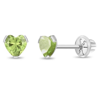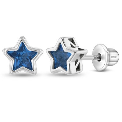 Girls' CZ Bezel Star Screw Back Sterling Silver Earrings - Light Green - In Season Jewelry