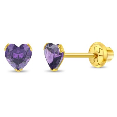Girls' CZ Birthstone Heart Screw Back Sterling Silver Earrings - Purple - In Season Jewelry