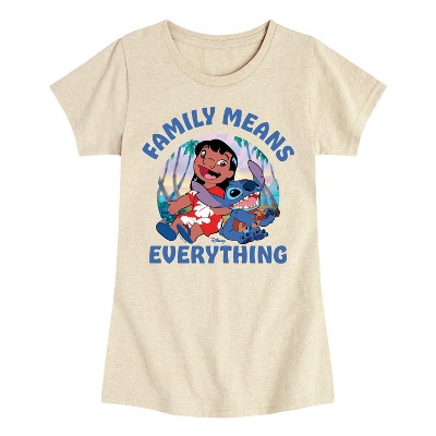 Girls' Lilo & Stitch Family Means Everything Fitted Short Sleeve Graphic T-Shirt - Birch - X-Large
