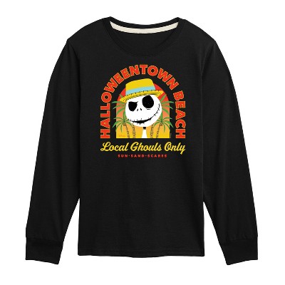 Nightmare Before Christmas - Halloweentown Beach - Local Ghouls Only - Sun Sand & Scares - Toddler And Youth Girls Short Sleeve Graphic T-Shirt - Add a touch of magic to your wardrobe with this graphic apparel featuring iconic Disney designs. Showcasing beloved characters and classic imagery, each piece combines nostalgic charm with modern style—perfect for Disney fans of all ages. Whether you're headed to the parks or just adding whimsy to your everyday look, these graphics bring the magic to life.