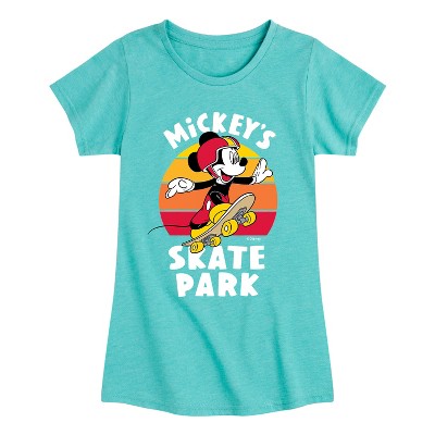 Girls' Disney Mickey Grid Fitted Short Sleeve Graphic T-Shirt - Turquoise - X-Large