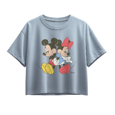 Girls' Disney Mickey Minnie Hug Short Sleeve Boxy Graphic T-Shirt - Chambray Blue - Small