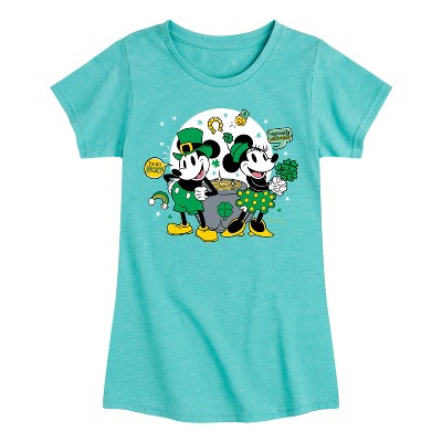Girls' Disney Mickey, Minnie, Pluto & Donald Fitted Short Sleeve Graphic T-Shirt - Turquoise - Large