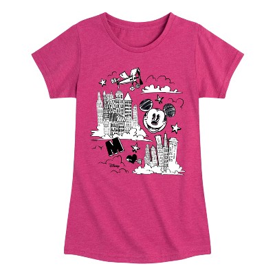 Girls' Disney Mickey Mouse Fitted Short Sleeve Graphic T-Shirt - Heather Fuchsia - Small