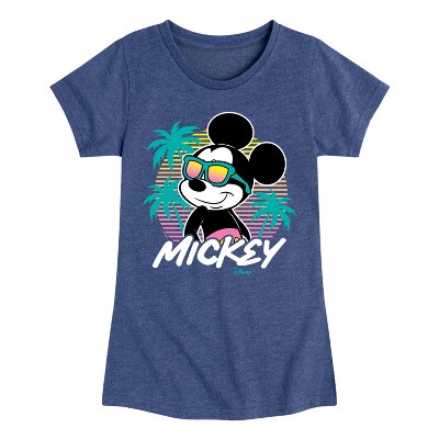 Girls' Disney Mickey Mouse Mood for Daze Rainbow Fitted Short Sleeve Graphic T-Shirt - Heather Navy - Small