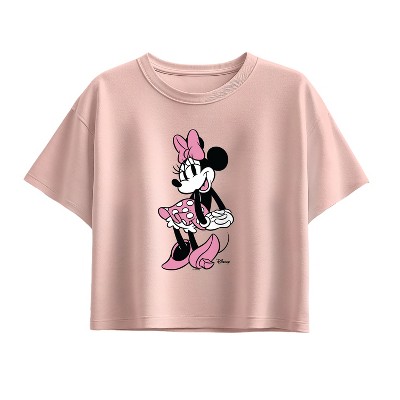 Girls' Disney Minnie Crest Short Sleeve Boxy Graphic T-Shirt - Light Pink - Medium