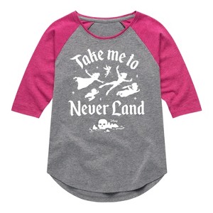 Disney - Peter Pan - Take Me to Neverland - Toddler And Youth Girls Raglan Graphic T-Shirt - Add a touch of magic to your wardrobe with this graphic apparel featuring iconic Disney designs. Showcasing beloved characters and classic imagery, each piece combines nostalgic charm with modern style—perfect for Disney fans of all ages. Whether you're headed to the parks or just adding whimsy to your everyday look, these graphics bring the magic to life.