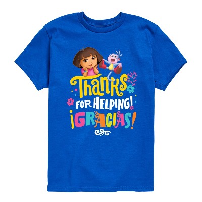 Dora The Explorer - Boots Thanks For Helping - Toddler And Youth Girls Fitted Short Sleeve Graphic T-Shirt - Bring adventure to your wardrobe with graphic apparel inspired by Dora the Explorer! Featuring bold colors, playful designs, and beloved characters like Dora, Boots, and Backpack, each piece captures the spirit of exploration and curiosity. Perfect for fans of all ages, this collection combines nostalgic charm with fun, eye-catching style for everyday adventures.