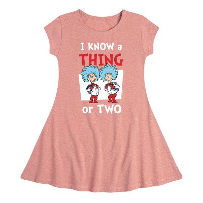 Girls' - Dr. Seuss - 2nd Grade Squad Thing 1 and Thing 2 Fit & Flair Cap Sleeve Graphic Dress