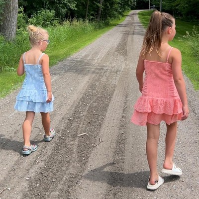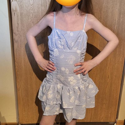 [This review was collected as part of a promotion.] Girls cute little light blue sun dress. In a size small 6/7 fits true to size with the straps being a little big until adjusted. Can be great for family outings and with a little sweater would be good for school. Material is soft and comfortable fitting. Adjustable straps for sizing. Layered bottom for design and for a fuller skirt. Good dress just in time for Easter. Good price point can good quality. I received an incentive to write this review.