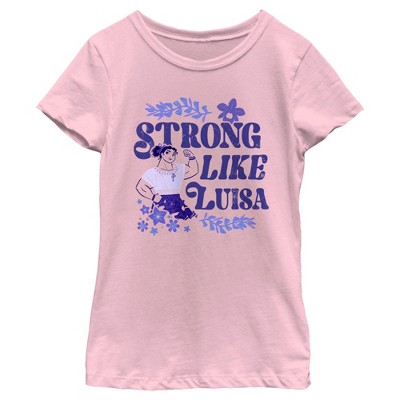 Girls' Encanto Mirabel Luisa Isabela We Don't Talk About Bruno Fitted Short Sleeve Graphic T-Shirt - Desert Pink - Medium