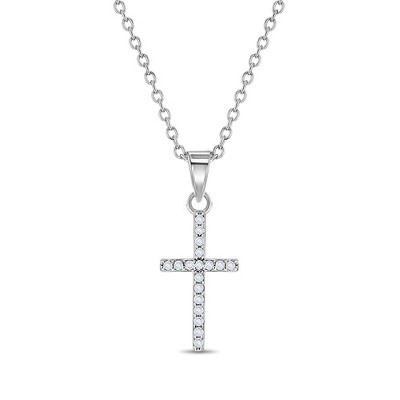 Girls' Flower CZ Cross Sterling Silver Necklace - Clear - In Season Jewelry