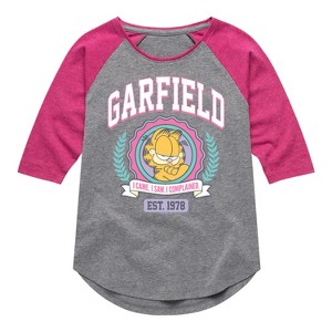 Girls' - Garfield - Collegiate Shirt Tail Raglan Graphic T-shirt - 1 of 3
