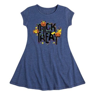 Girls' Garfield Feliz Navi Dog Fit & Flair Cap Sleeve Graphic Dress - Heather Navy - Medium