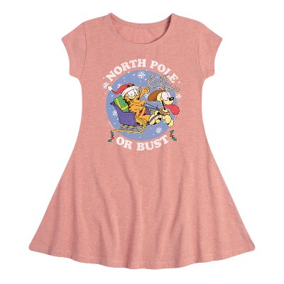 Garfield - Feliz Navi Dog - Toddler And Youth Girls Fit And Flare Dress - Bring the humor and laziness of the famous orange cat to your wardrobe with Garfield graphic apparel. Featuring Garfield, Odie, and Jon, these designs celebrate the iconic comic strip and its beloved characters.