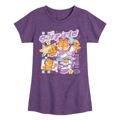 Girls' Garfield Garf And Odie Logo Fitted Short Sleeve Graphic T-Shirt - Heather Purple - Large