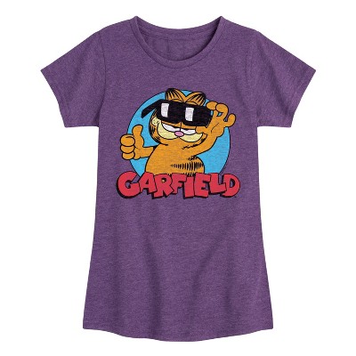 Girls' Garfield Garfield Skater Logo Fitted Short Sleeve Graphic T-Shirt - Heather Purple - Medium
