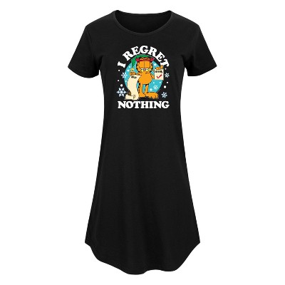 Garfield - I Regret Nothing - Toddler And Youth Girls Fit And Flare Dress - Bring the humor and laziness of the famous orange cat to your wardrobe with Garfield graphic apparel. Featuring Garfield, Odie, and Jon, these designs celebrate the iconic comic strip and its beloved characters.