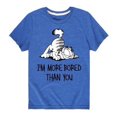 Garfield - More Bored Than You - Toddler And Youth Girls Short Sleeve Graphic T-Shirt - Bring the humor and laziness of the famous orange cat to your wardrobe with Garfield graphic apparel. Featuring Garfield, Odie, and Jon, these designs celebrate the iconic comic strip and its beloved characters.