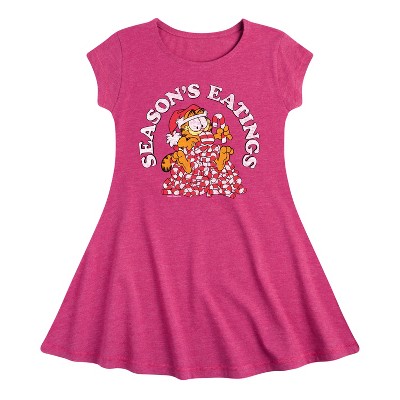Garfield - North Pole Or Bust - Toddler And Youth Girls Fit And Flare Dress - Bring the humor and laziness of the famous orange cat to your wardrobe with Garfield graphic apparel. Featuring Garfield, Odie, and Jon, these designs celebrate the iconic comic strip and its beloved characters.