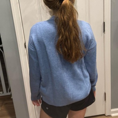 [This review was collected as part of a promotion.] My daughter normally takes a size 10/12 top and this sweater is a little on the large size. The sweater overall has a nice soft feel to it, pretty color and lovely and unique overall appearance. The sweater is a little bit baggy in the sides, but I do like that it comes down to my daughter‘s waist. The sleeves are fine as well because they can be cuffed if they are a little too long for her. I will keep this because I like to buy things a little bit larger so that they can fit her longer, but some people may not like how baggy the sweater is overall.
