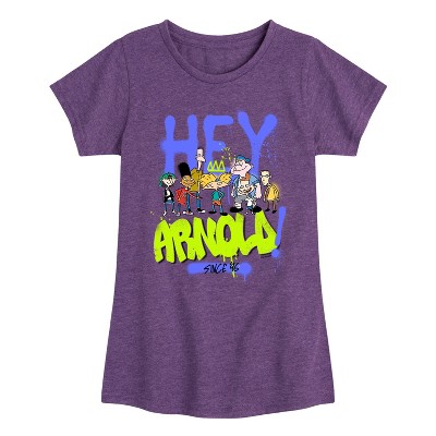Girls' Hey Arnold! Arnold and Gerald Skateboard Fitted Short Sleeve Graphic T-Shirt - Heather Purple - Large