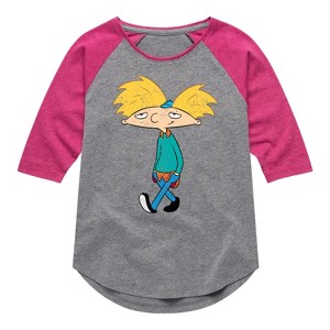 Girls' - Hey Arnold! - Distressed Arnold Shirt Tail Raglan Graphic T-shirt - 1 of 3
