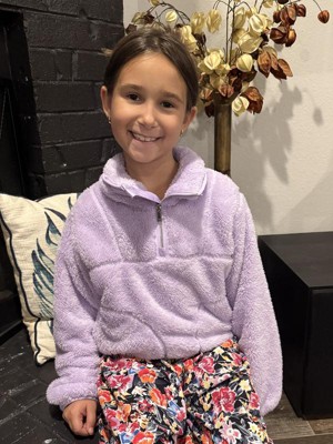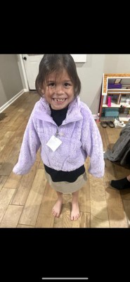 This All In Motion High Pile 1/2 Zip Pullover is so cute and soft. My daughter can be pretty picky about clothes sometimes, but she really loves how cozy it is and really likes the light, lavender purple color. I appreciate that the zipper is made of metal instead of plastic because I feel like it'll last longer. It's also nice having the 1/2 zip top for easy on and off. So far this pullover has been great for chilly mornings, but I do wish it was a tad longer as it seems to run slightly short in length. Otherwise, it fits true to size.