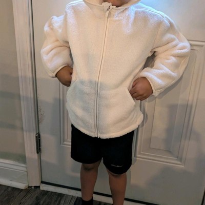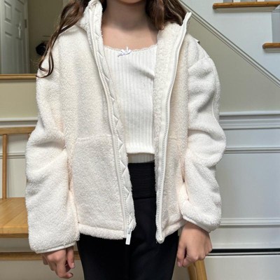 [This review was collected as part of a promotion.] This is the all in girls motion high pile fleece jacket in cream color and size medium. My daughter is 4’8” and weighs about 65 pounds. She typically wears a size 8 / medium. This fits on the larger size but with a sweatshirt on under, it would be fine. She loves how soft and cozy this jacket is. The hood is a nice feature and the zipper front. She recommends this jacket! I received an incentive to write this review.